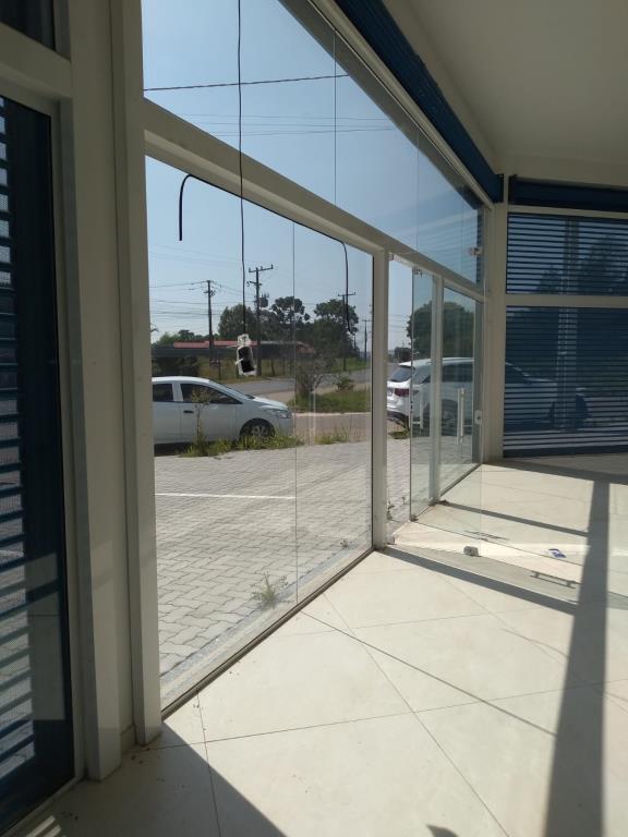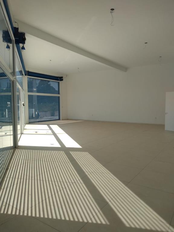 Loja de esquina 120 m, com estacionamento e 2 banheiros, com cortinas automatizadas.