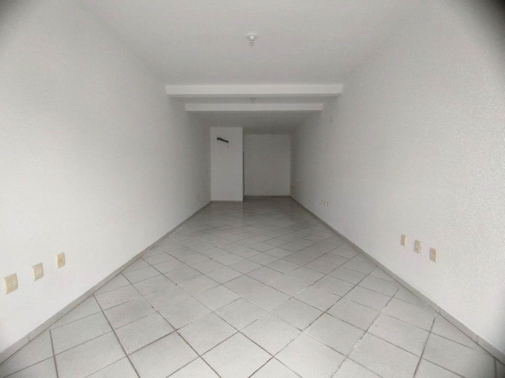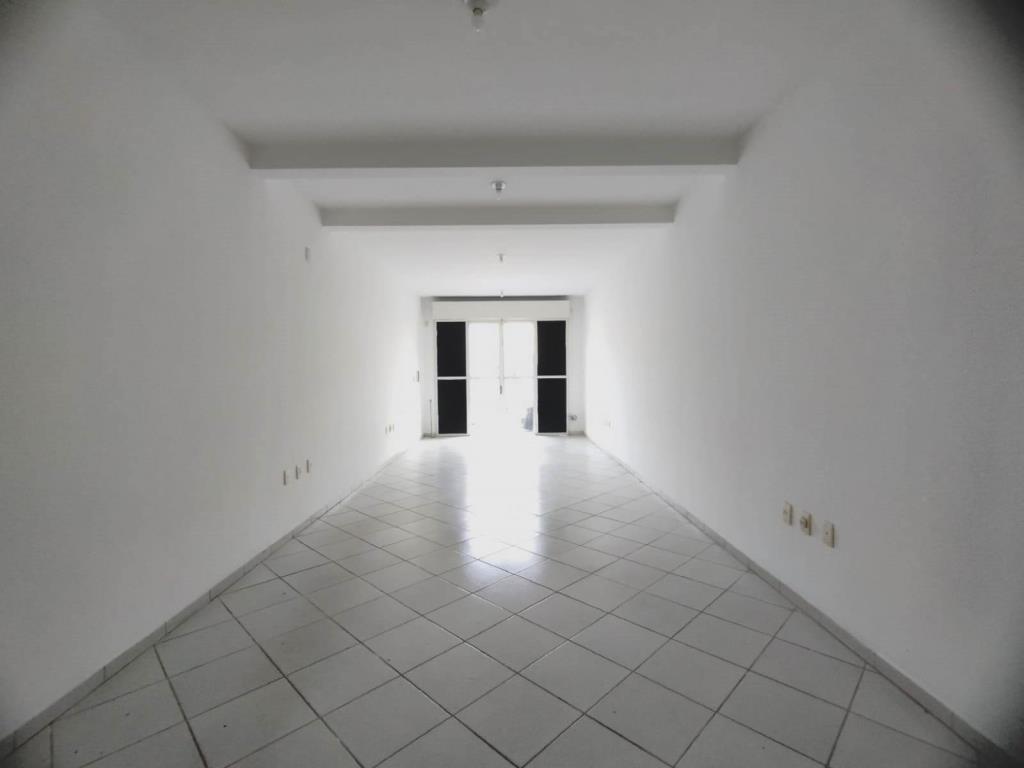 Loja comercial com 41,63 m², 01 banheiro, vitrine e piso de cerâmica.