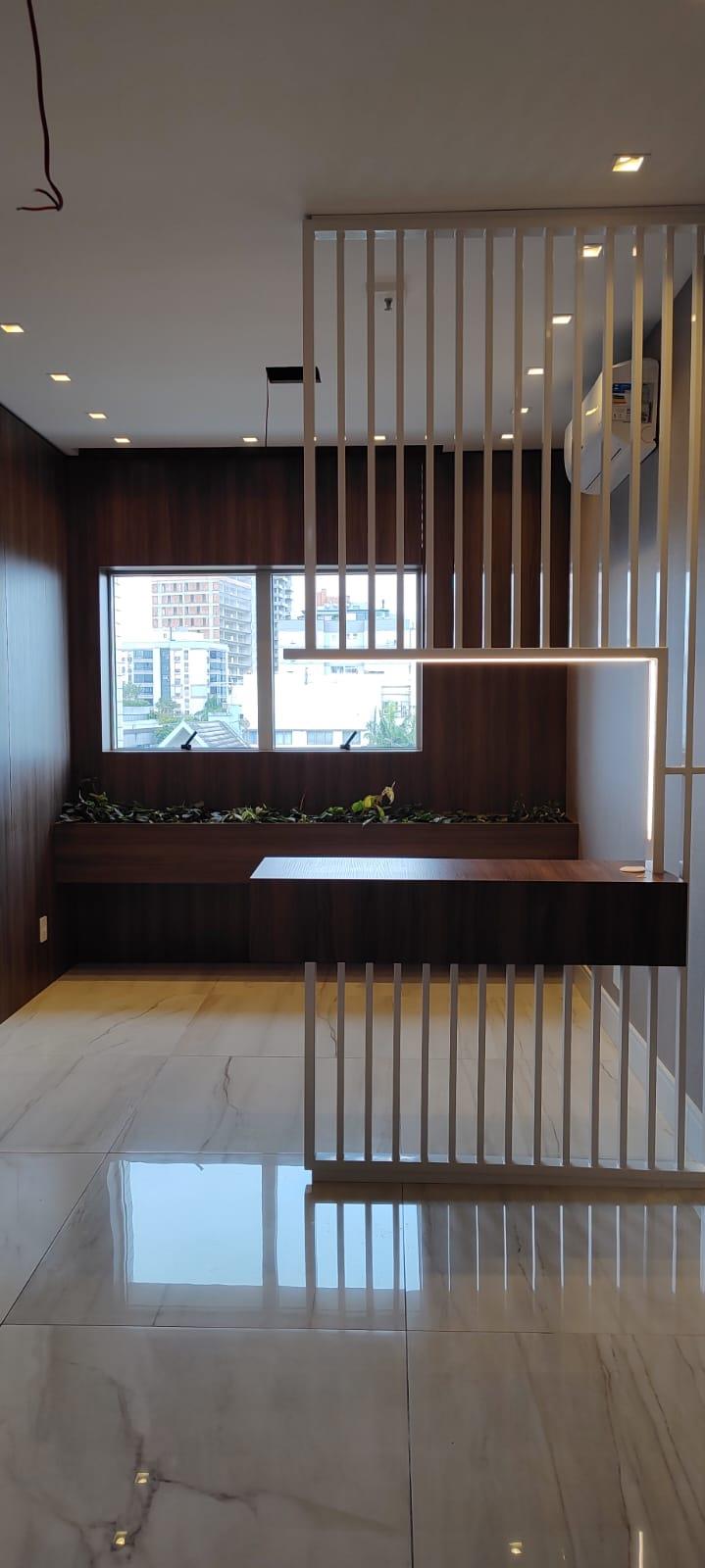 Consultório permanece conforme as fotos: Copa, Lavabo, Escritório, Recepção, 2 Ar Condicionados, Rebaixe de Gesso, Divisória, Mobiliada(o), com a área em torno de 50,89 m².