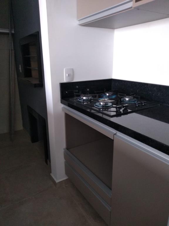 Studio, dormitório, banheiro social, closet, cozinha, churrasqueira privativa e garagem.