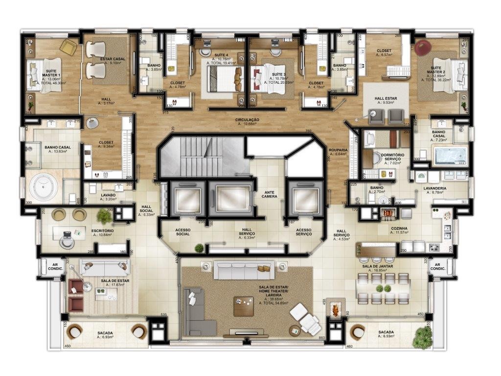 Áreas privativas:162,59m2 e de 339,16m2