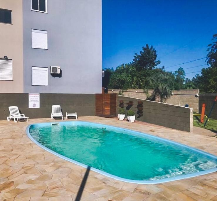 PROXIMIDADES E FÁCIL ACESSO A BR 116, com 2 dormitórios, sala de estar, banheiro social, cozinha, área de serviço, garagem, piscina, playground, salão de festas portaria 24h, elevador e câmera de vigilância.
